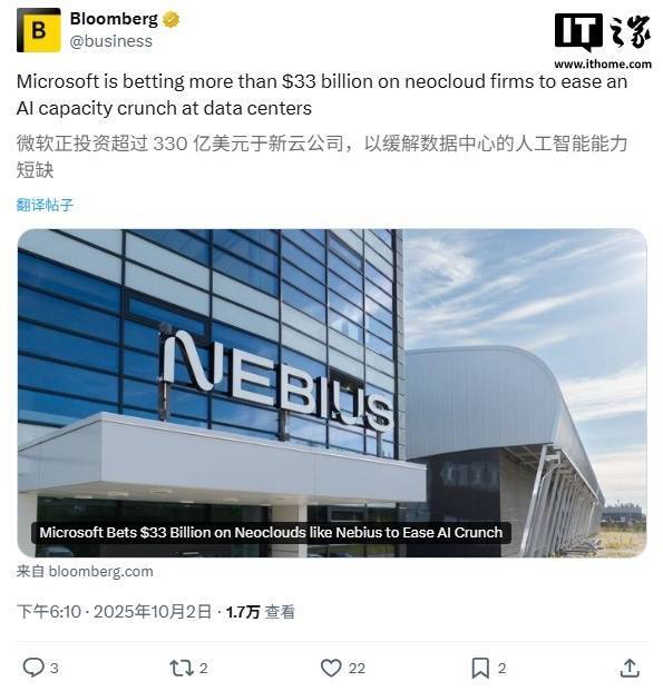 IT之家 10 月 3 日消息配资中心,彭博社昨天报道称,微软已承诺向多家“新云”(neocloud)服务提供商投资超 330 亿美元(IT之家注:现汇率约合 2350.48 亿元人民币)。